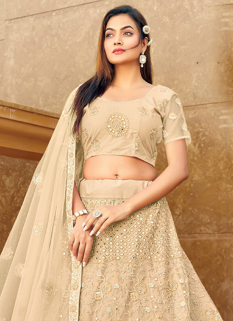 Comes with semi -stitched lehenga, un stitched choli and dupatta fabric. To have it stitched, please select the custom tailoring options. Lehenga with elaborate patterns and colors are used for photo-shoot. Color and pattern of the lehenga might not be as shown in the image.