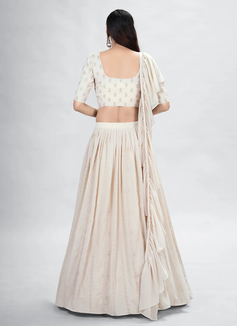 Beige Georgette Thread And Sequins Umbrella Lehenga Party Wear