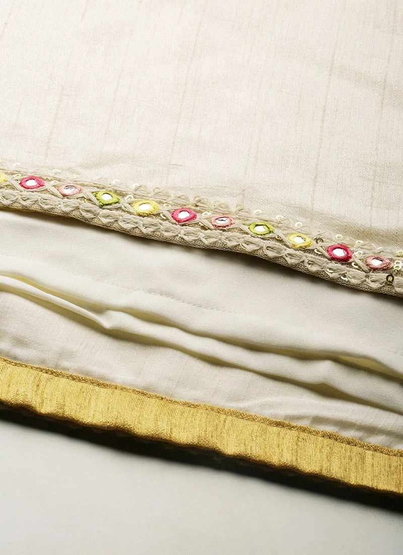 Beige N Yellow Embroidered Pleated Dress Festive Wear