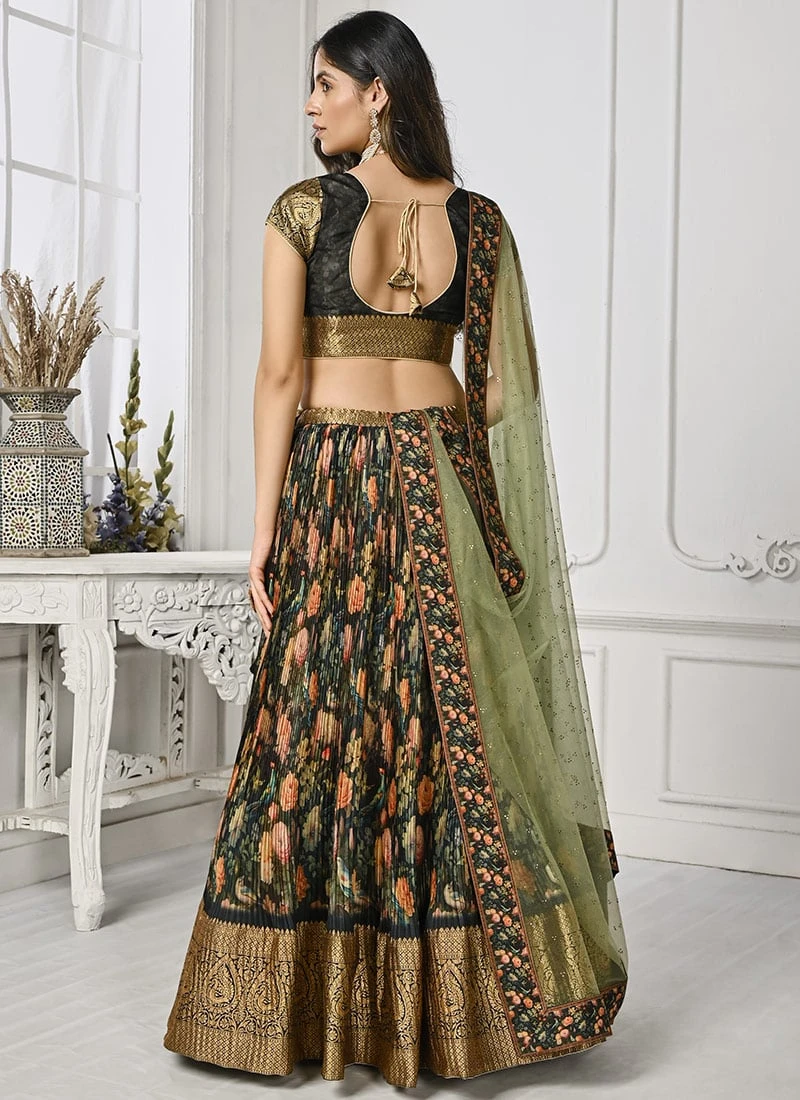 Black Art Silk Digital Print A Line Lehenga Festive Wear