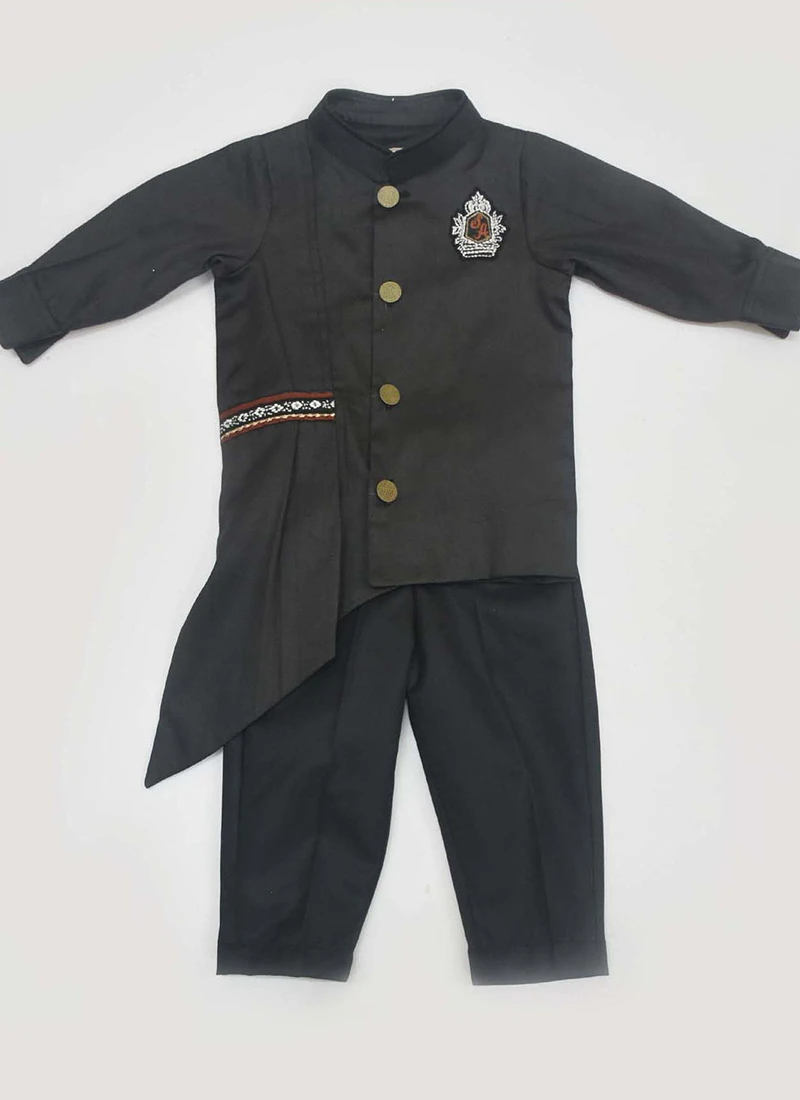 Black Cotton Silk Embroidered Boys Kurta Pyjama