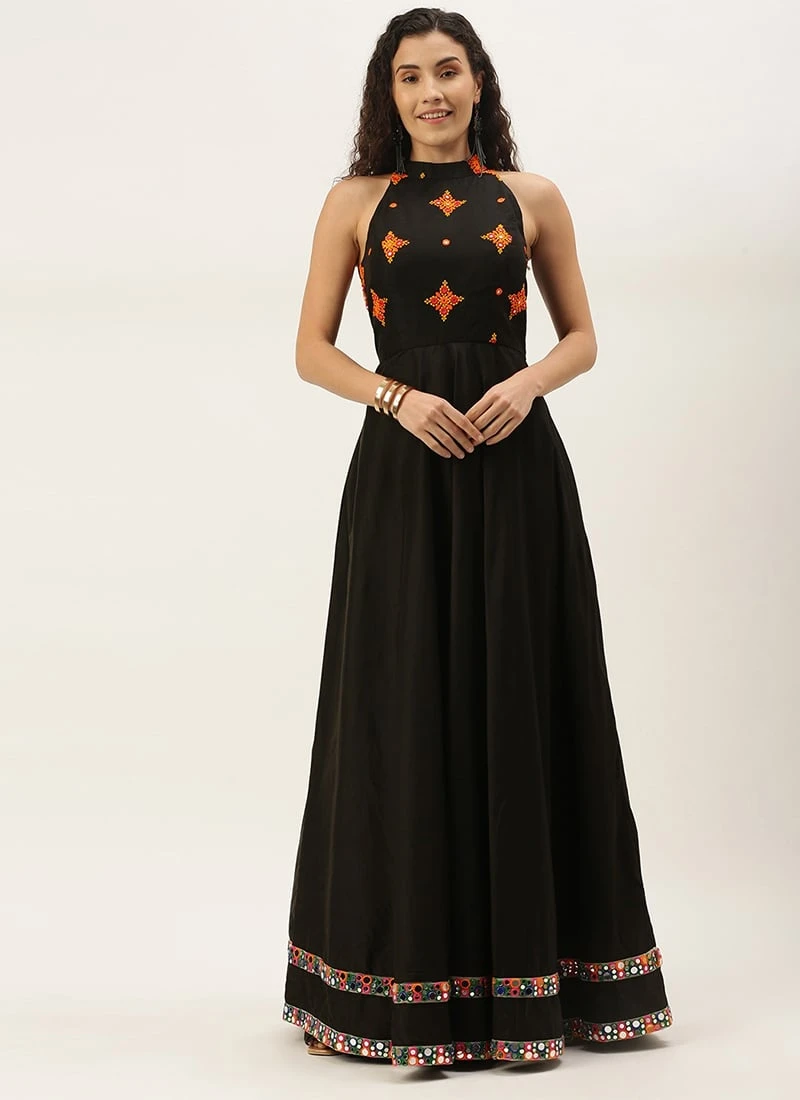Black Embroidered Halter Neck Embellished Gown Festive Wear