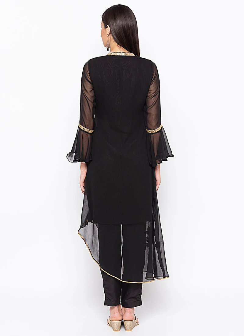 Black Georgette Embroidered Kurta Straight Pant Set After Six Wear