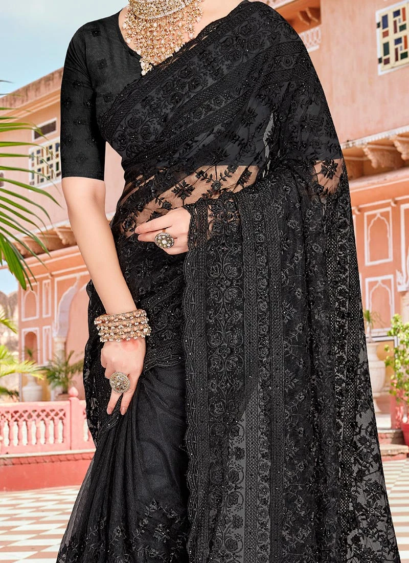 Comes with unstitched blouse fabric. To have the blouse stitched, please select the custom tailoring options. Blouses with elaborate patterns and colors are used for photo-shoot. Color and pattern of the blouse might not be as shown in the image.