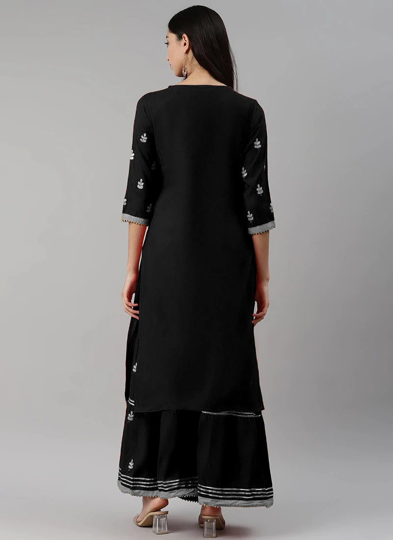 Black Rayon Embroidery Kurta Sharara Set Party Wear
