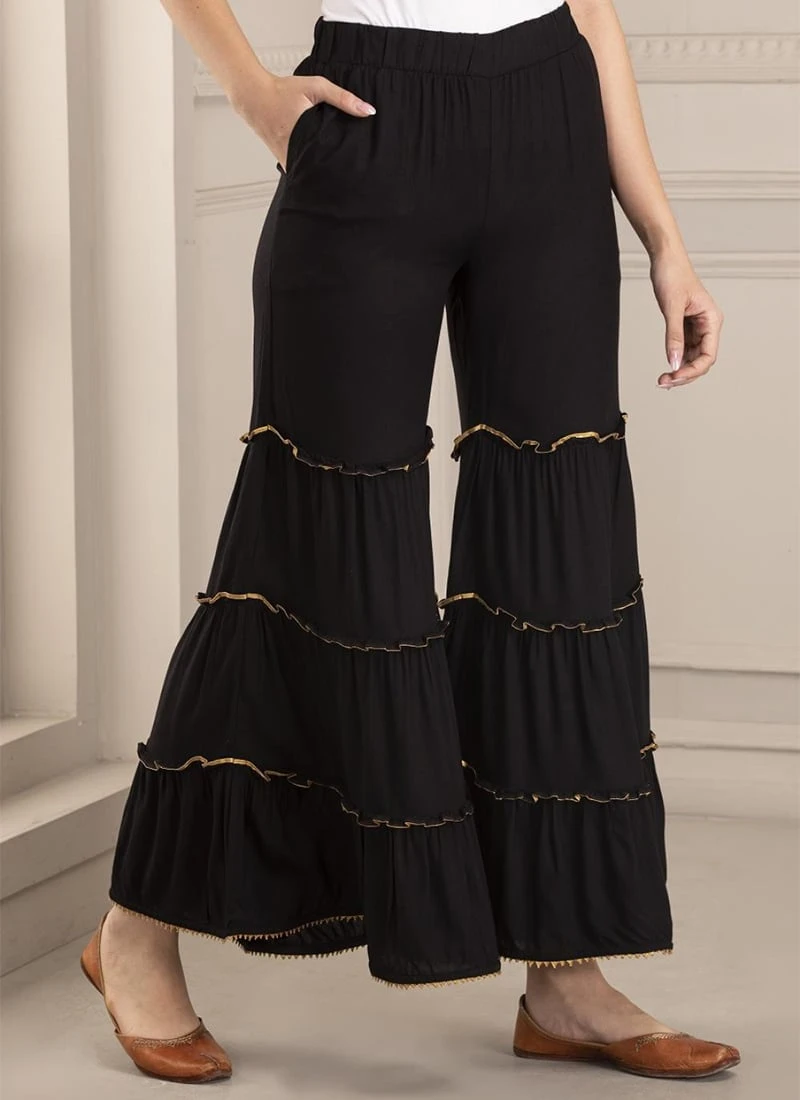 Black Rayon Sharara Pant Work Wear