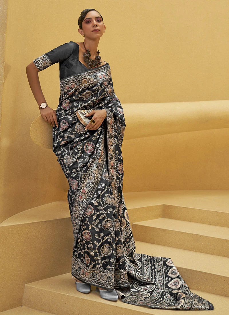 Black Silk Zari Work Saree Festive Wear