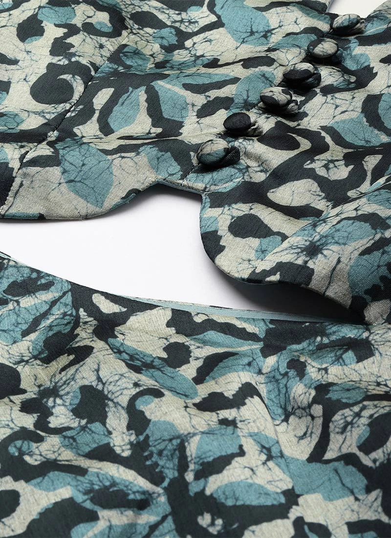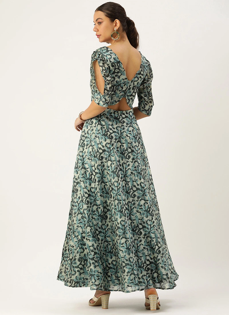 Blue Art Silk Digital Printed Dress After Six Wear Festive Wear