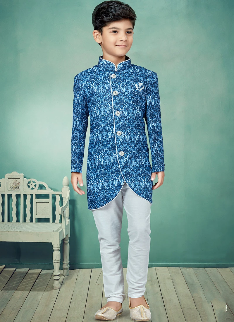 Blue Art Silk Printed Indowestern Sherwani Party Wear