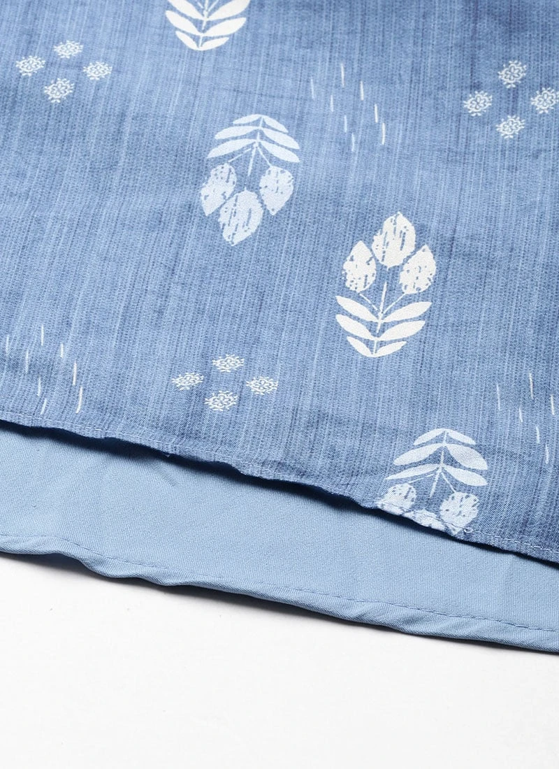 Blue Digital Printed Jacket Style Jumpsuit Festive Wear