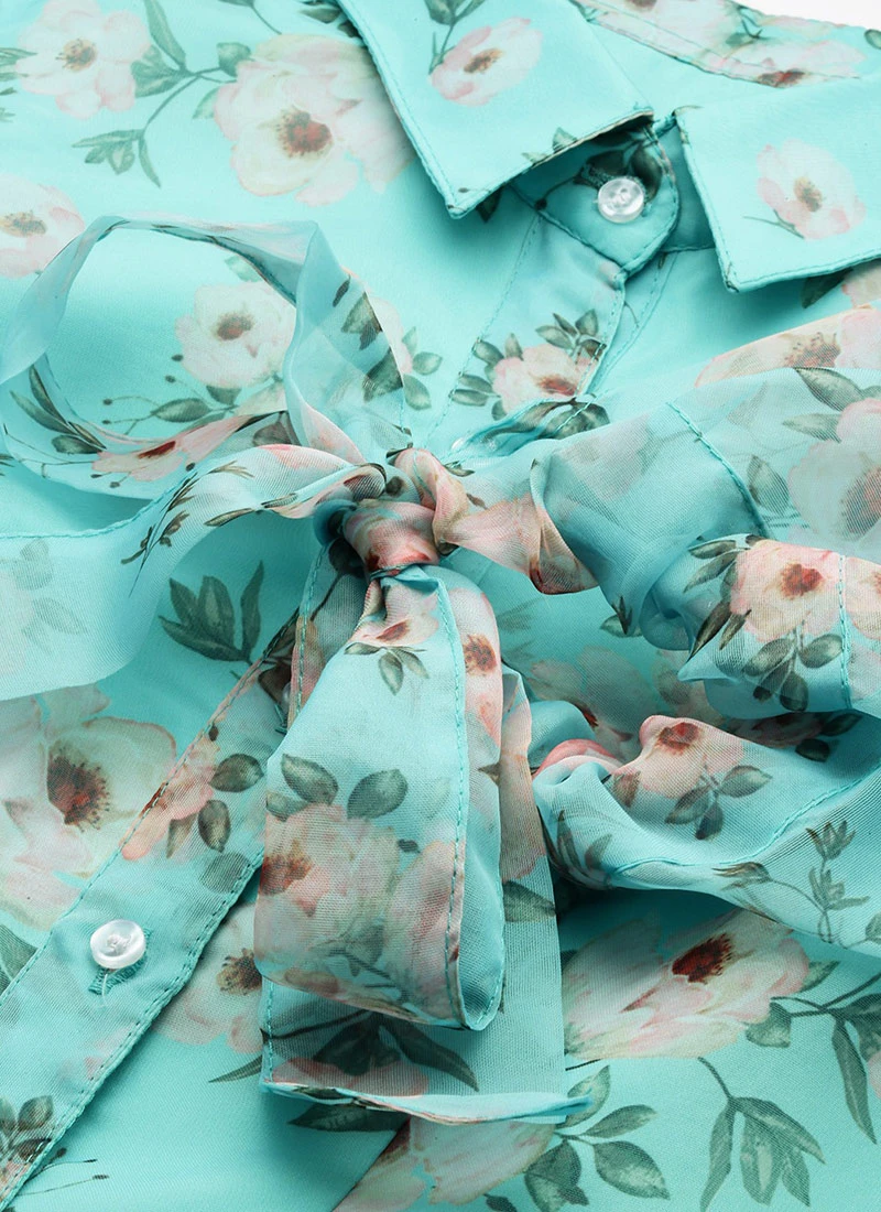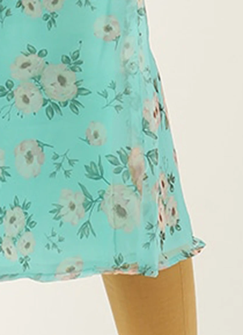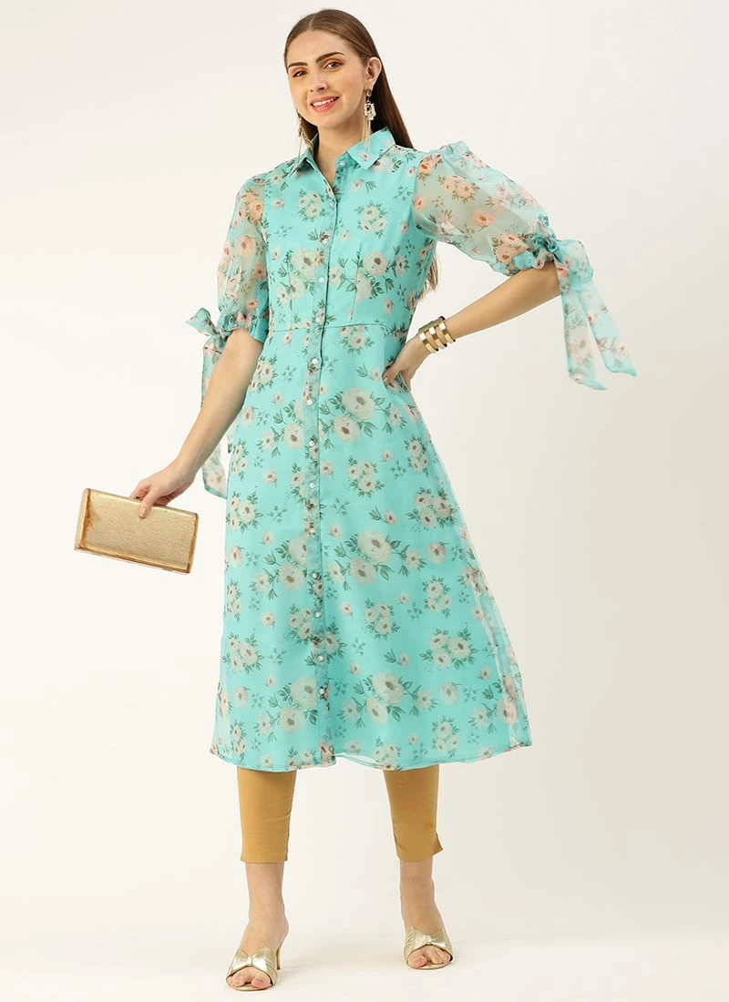 Blue Digital Printed Organza Kurti Festive Wear