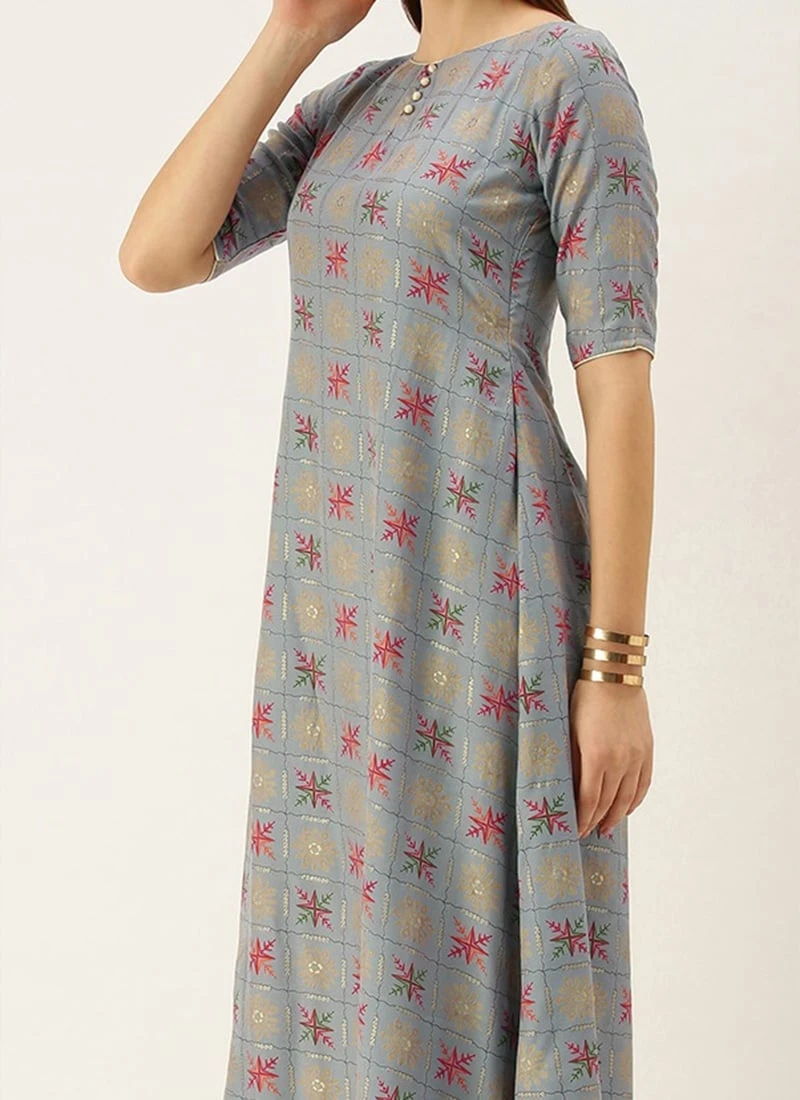 Blue Foil Print Muslin N Beige Straight Pant Suit Festive Wear