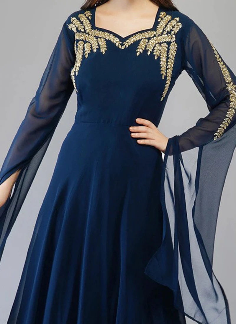 Be the first to review “Blue Georgette Embroidery Kurta Churidar Set Party Wear” Cancel reply