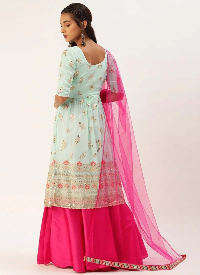 Blue N Pink Embroidered Lehenga Set Festive Wear