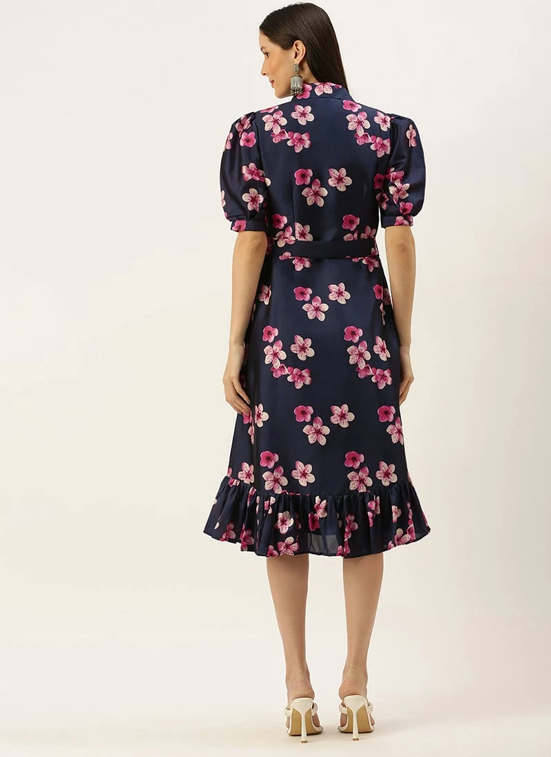 Blue Printed Art Silk Shirt Dress After Six Wear