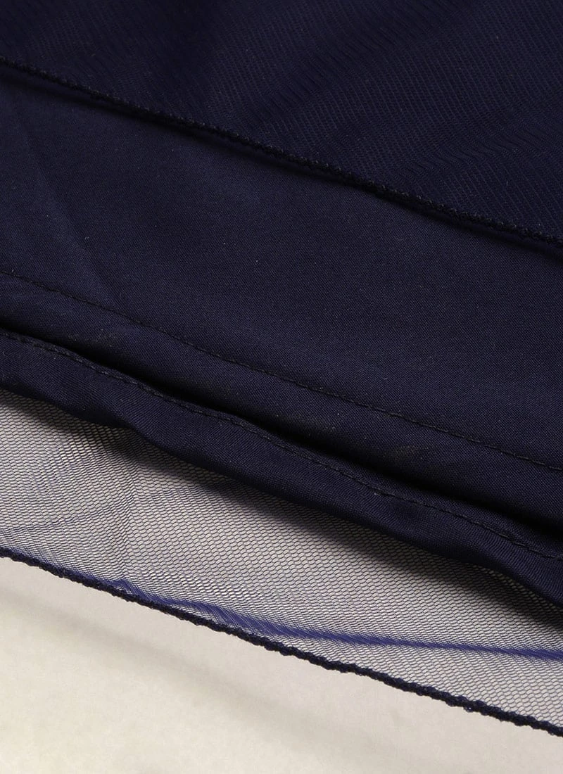 Blue Velvet Embroidered Dress With Cape Party Wear