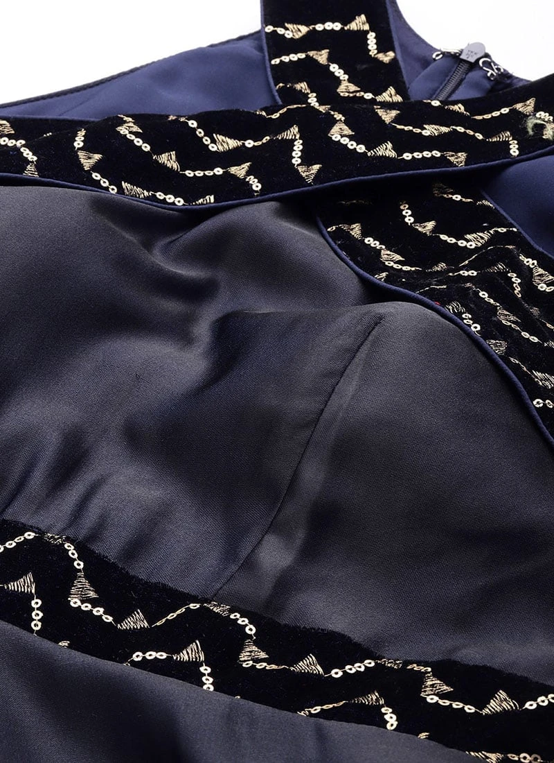 Blue Velvet Embroidered Off Shoulder Dress Festive Wear Party Wear