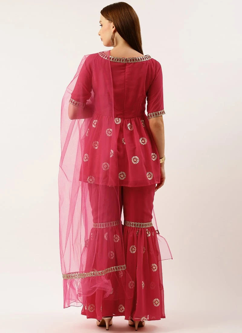 Bottom From Dark Pink Georgette Embroidered Gharara Suit Set After Six Wear