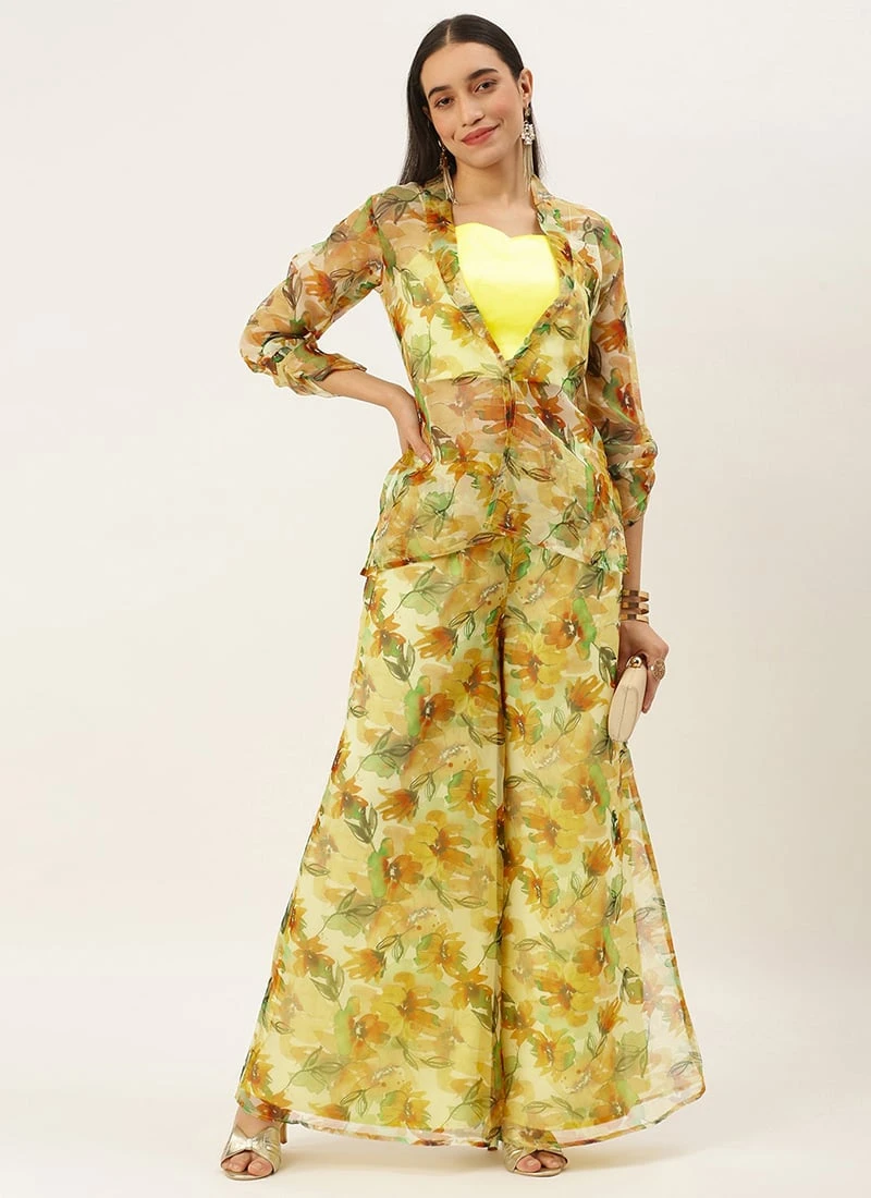 Bottom From Green Organza Palazzo N Jacket Co Ords Set After Six Wear
