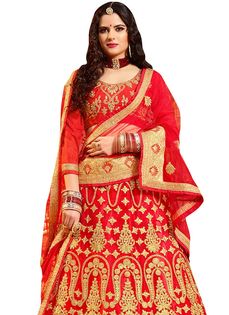 Comes with unstitched lehenga, choli and dupatta fabric. To have it stitched, please select the custom tailoring options. Lehenga with elaborate patterns and colors are used for photo-shoot. Color and pattern of the lehenga might not be as shown in the image.
