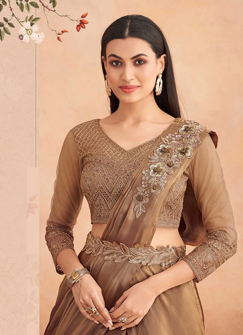 Comes with unstitched blouse fabric. To have the blouse stitched, please select the custom tailoring options. Blouses with elaborate patterns and colors are used for photo-shoot. Color and pattern of the blouse might not be as shown in the image.