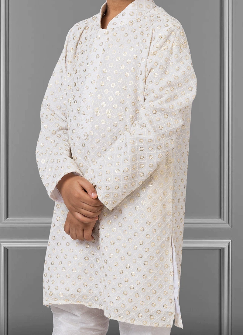 Cream Georgette Embroidered Boys Kurta Pyjama Party Wear