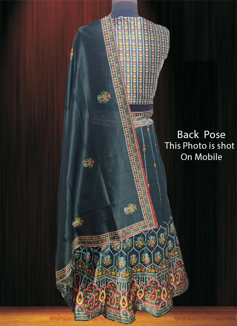 Dark Green Benarasi Silk Printed Umbrella Lehenga Festive Wear