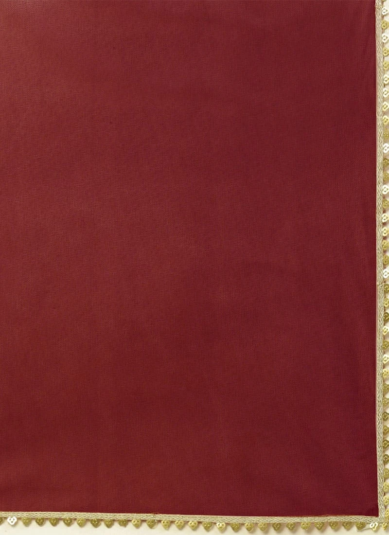 Dupatta From Cream Georgette Embroidered Maroon Kali Lehenga After Six Wear