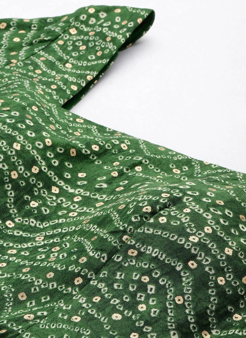 Dupatta From Green Bandhani Printed Rayon Gown With Dupatta Set After Six Wear