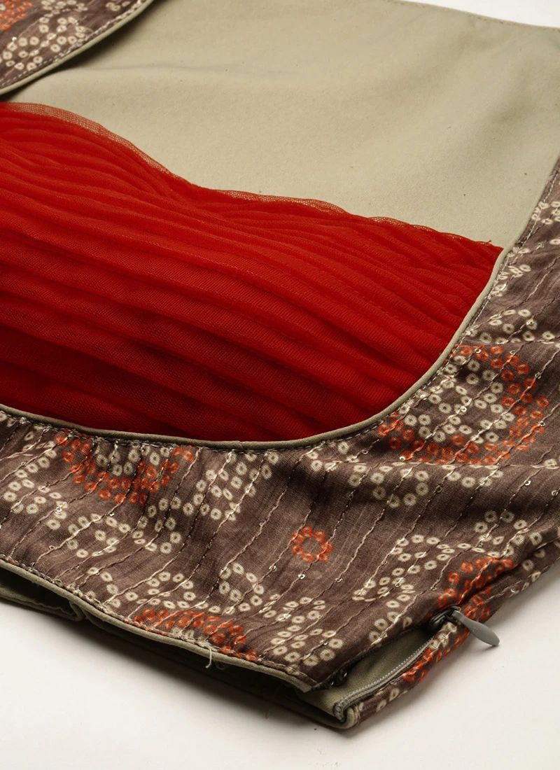 Dupatta From Grey Digital Print Art Silk Lehenga Set After Six Wear