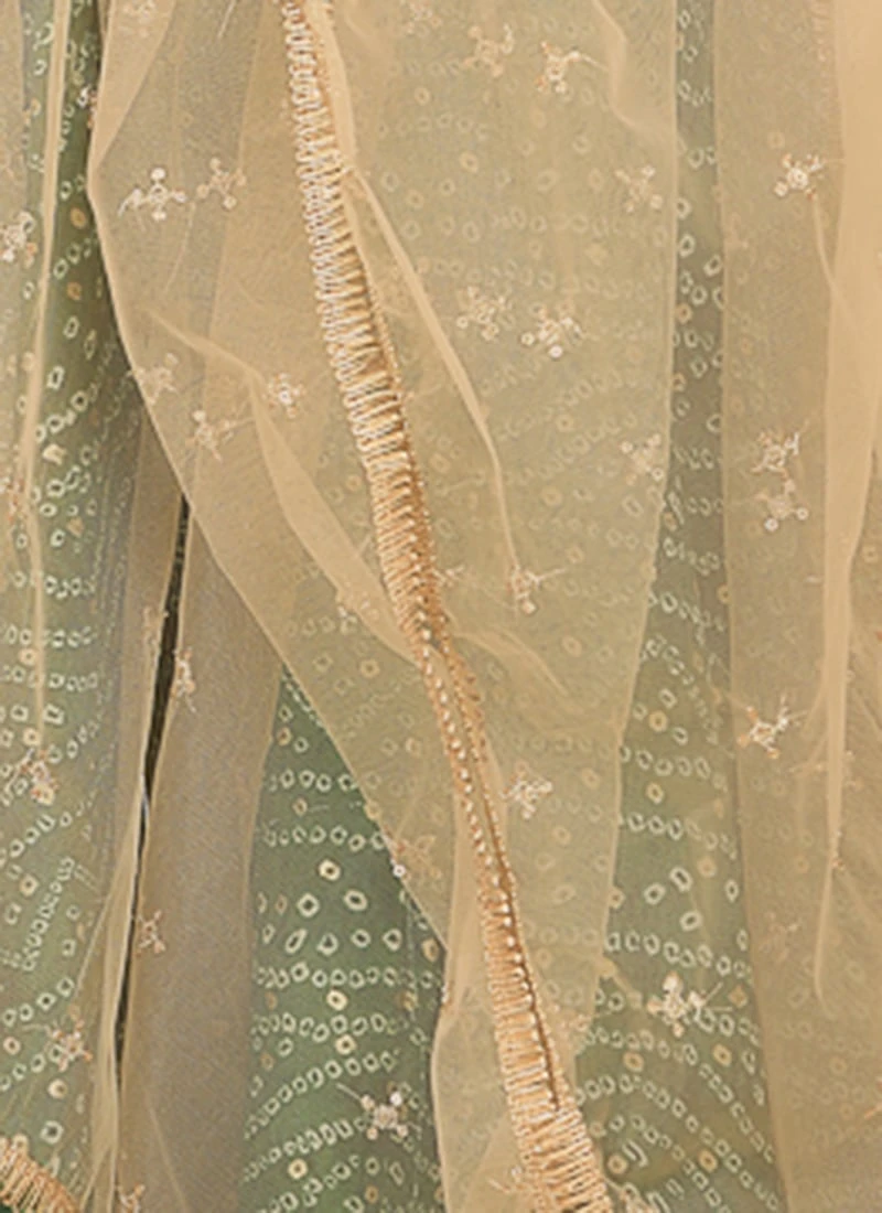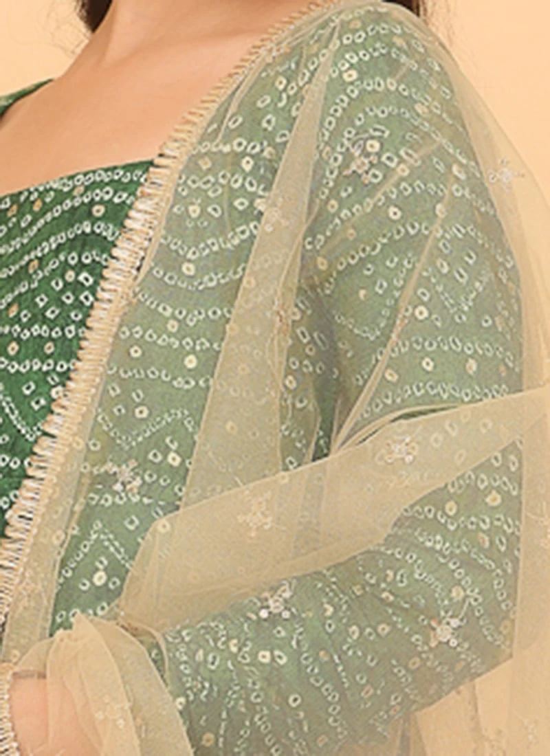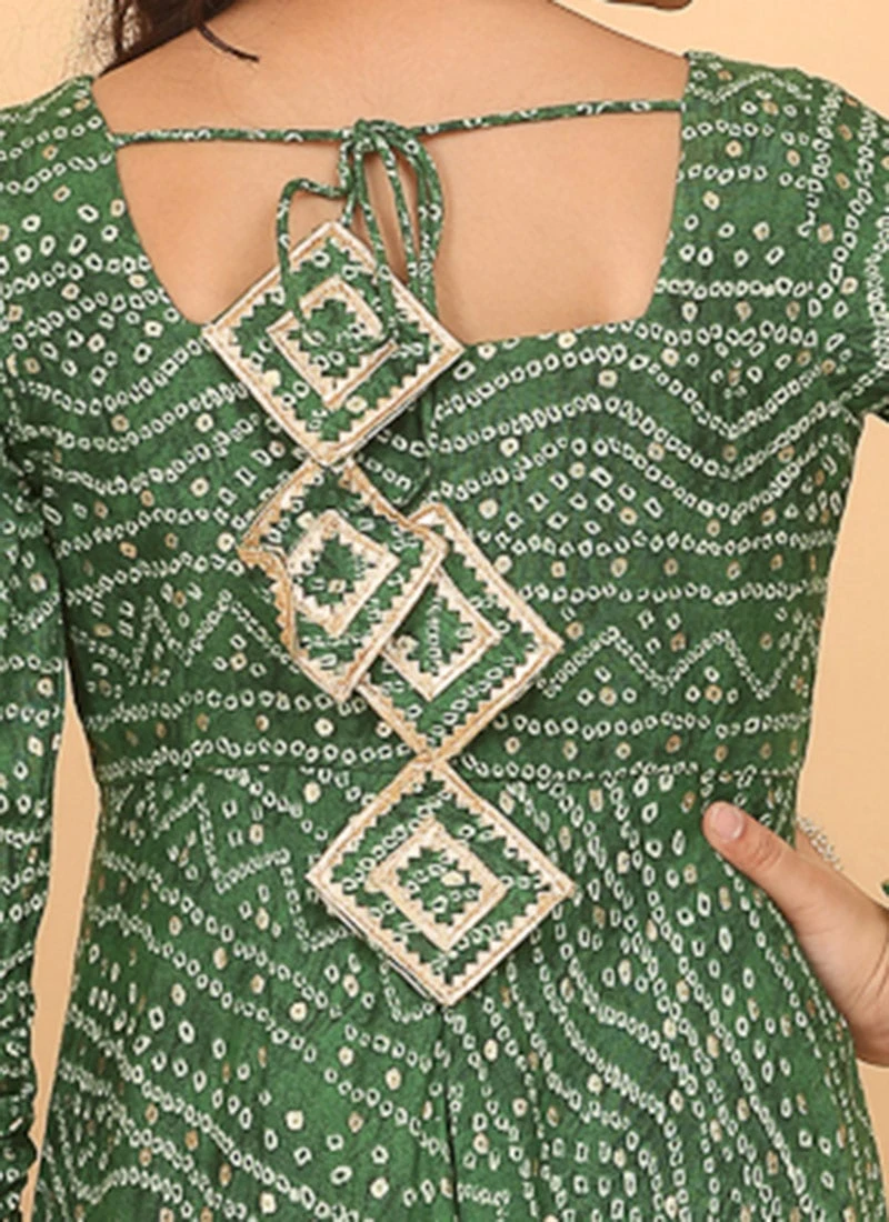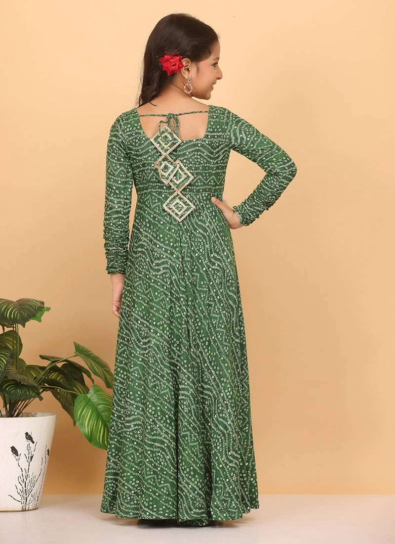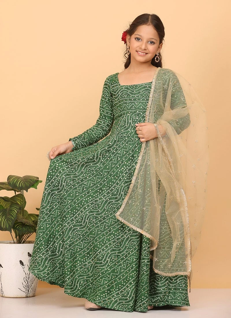 Dupatta From Kids Girls Green Bandhani Printed Rayon Gown With Dupatta Set After Six Wear