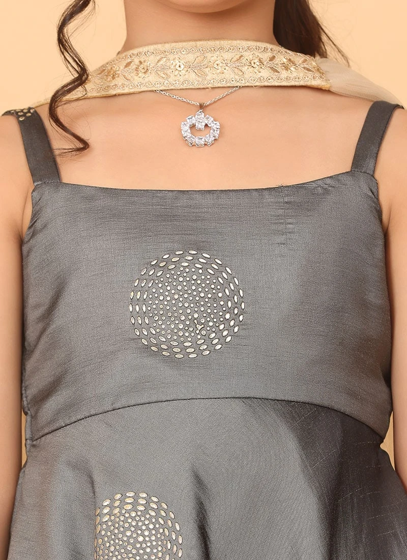 Dupatta From Kids Girls Grey Art Silk Foil Print Gharara Set After Six Wear