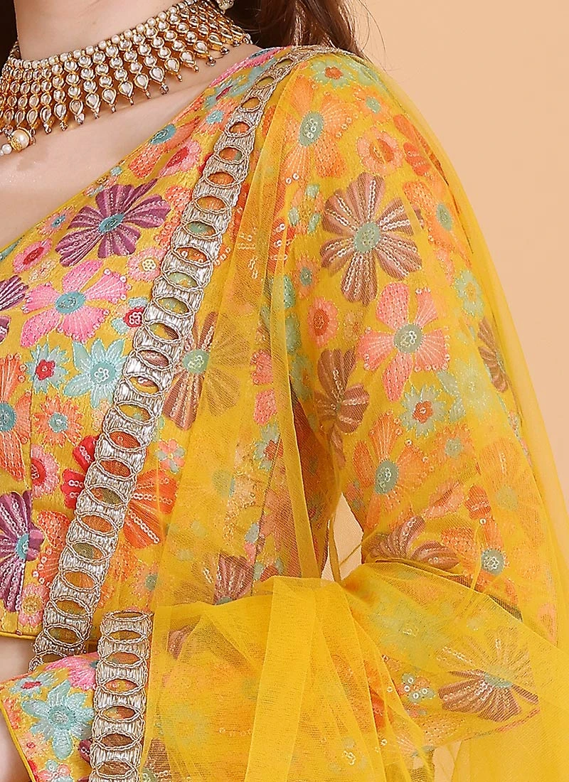 Dupatta From Mustard Yellow Embroidered Ruffles Lehenga After Six Wear