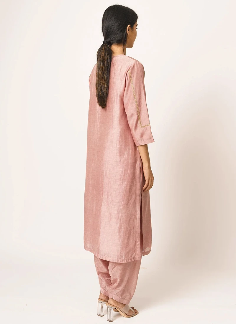 Dusty Pink Pure Chanderi Silk Embroidered Kurta Salwar Set Party Wear