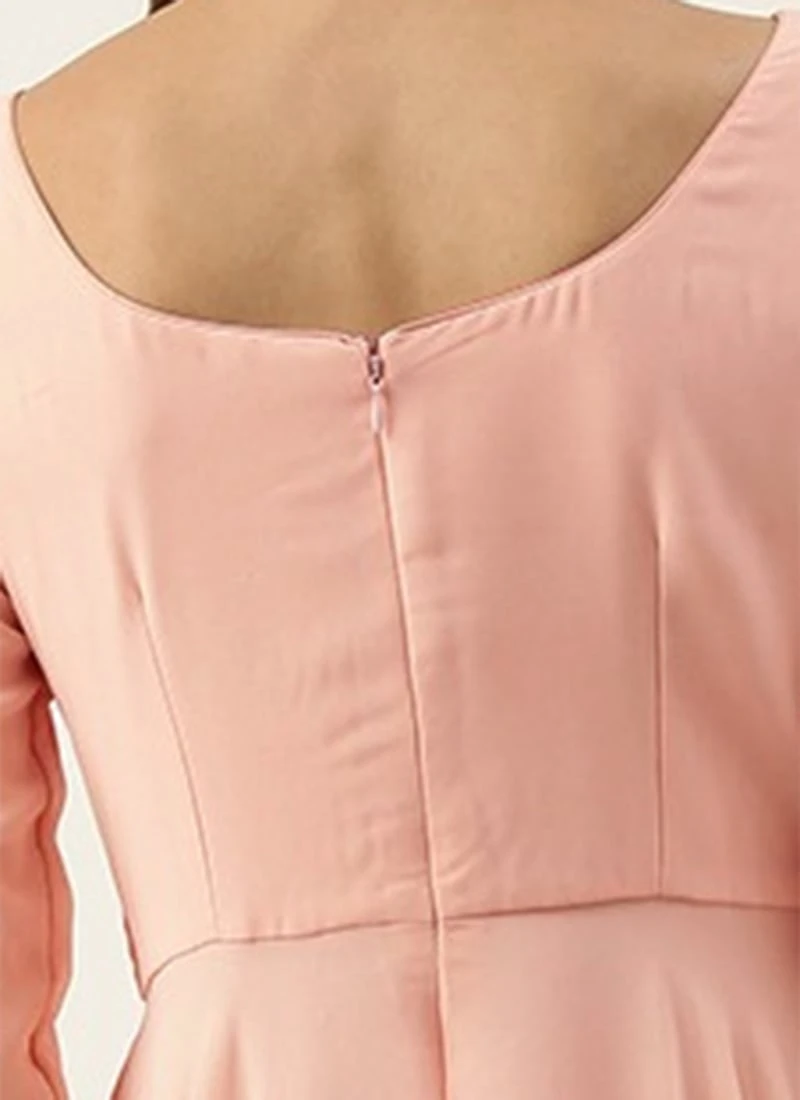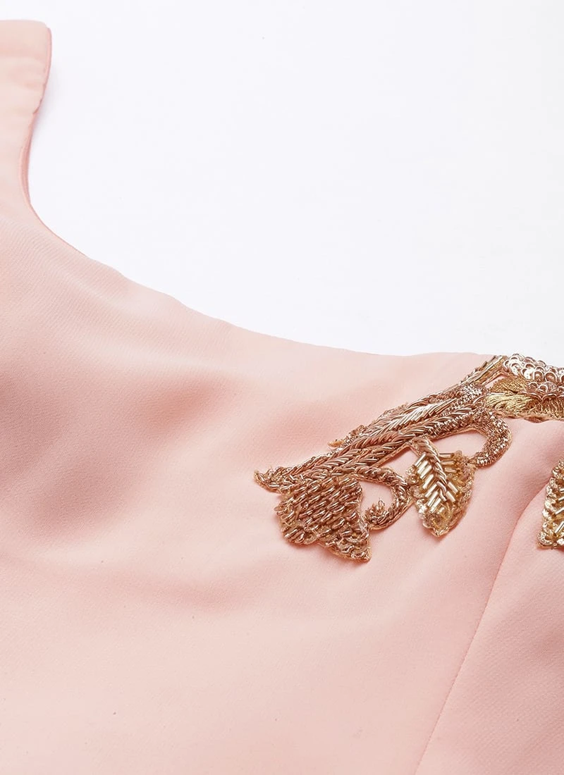 Embroidered Peach Georgette Gown Party Wear