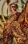 Comes with unstitched blouse fabric. To have the blouse stitched, please select the custom tailoring options. Blouses with elaborate patterns and colors are used for photo-shoot. Color and pattern of the blouse might not be as shown in the image.