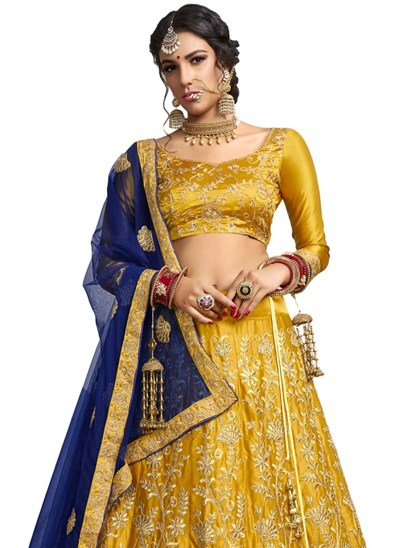 This product consists of semistitched blouse, lehenga and dupatta fabric. This can be stitched using the custom tailoring options below. To buy semi-stitched fabric, just choose the unstitched option.