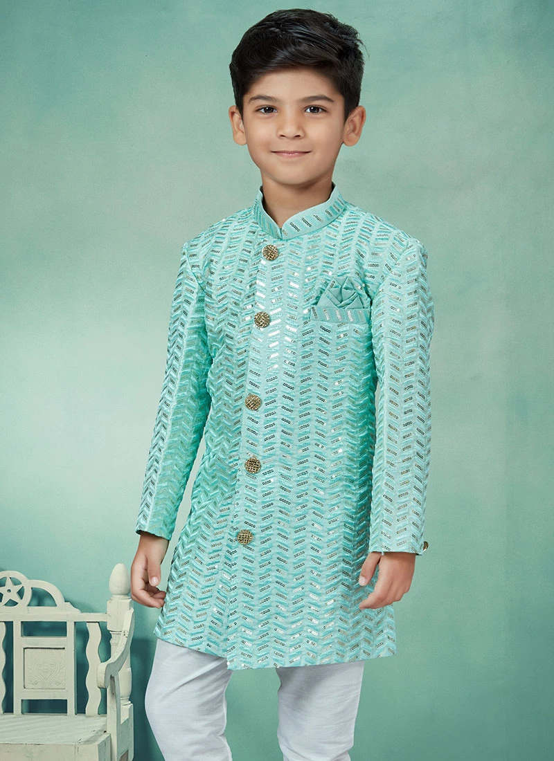 Green Art Silk Sequins Indowestern Sherwani Party Wear