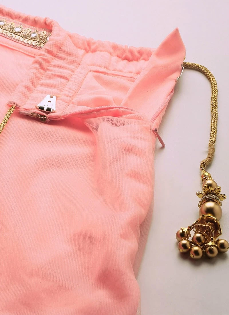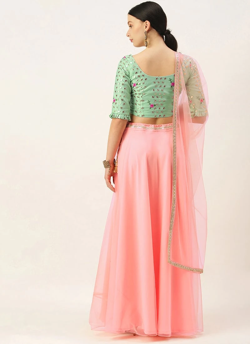Green Chanderi Blouse N Pink Net Lehenga Party Wear