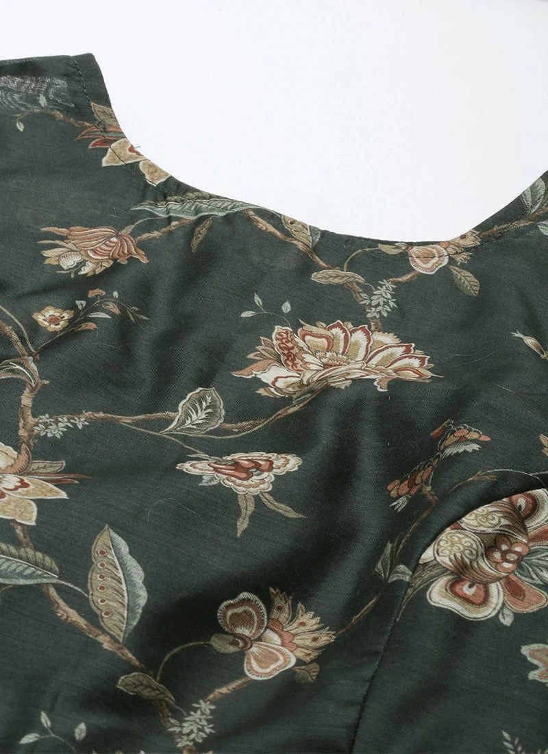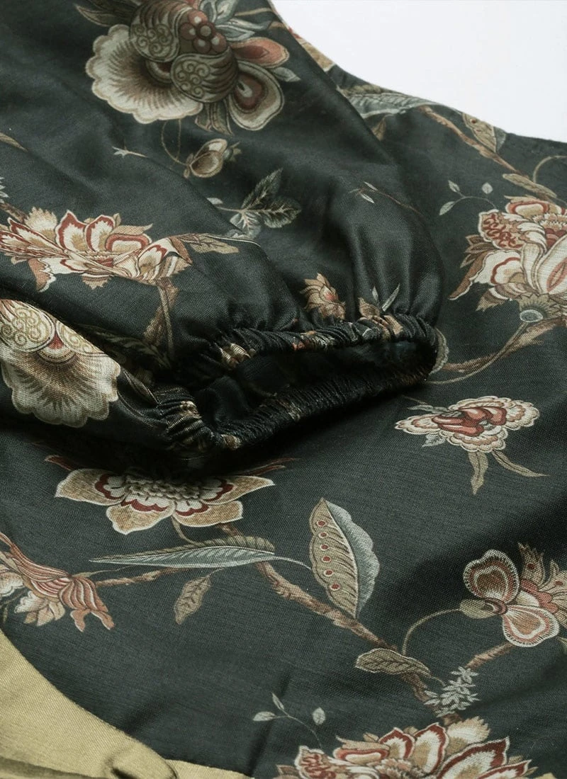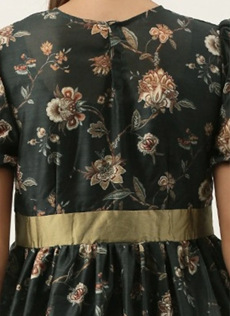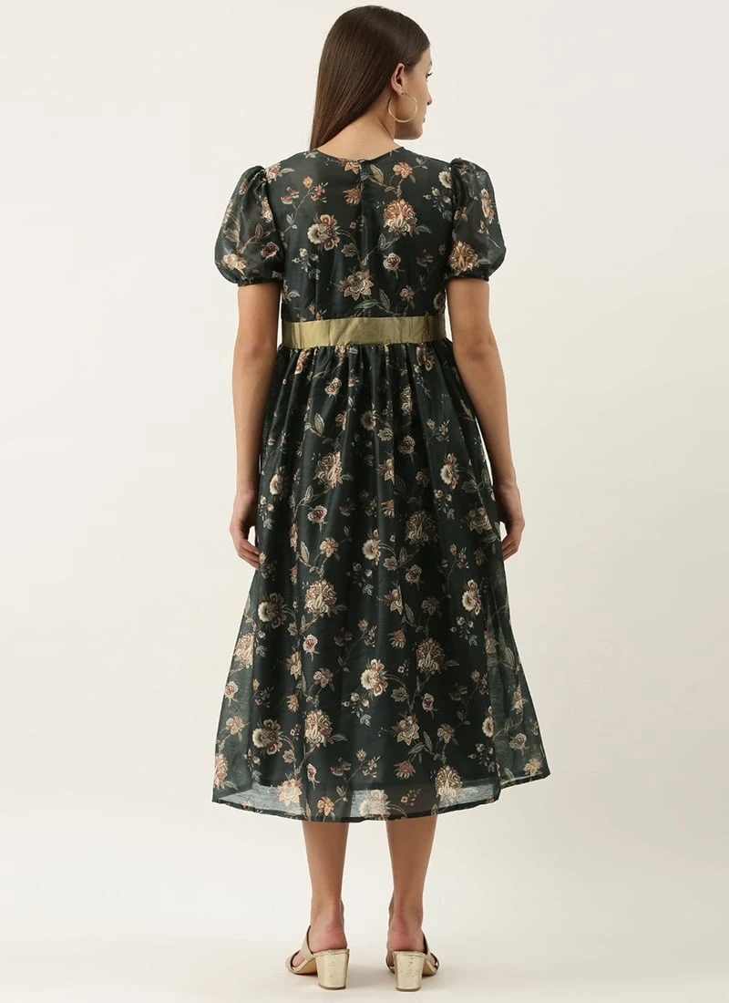 Green Chanderi Silk Puff Sleeve Dress After Six Wear