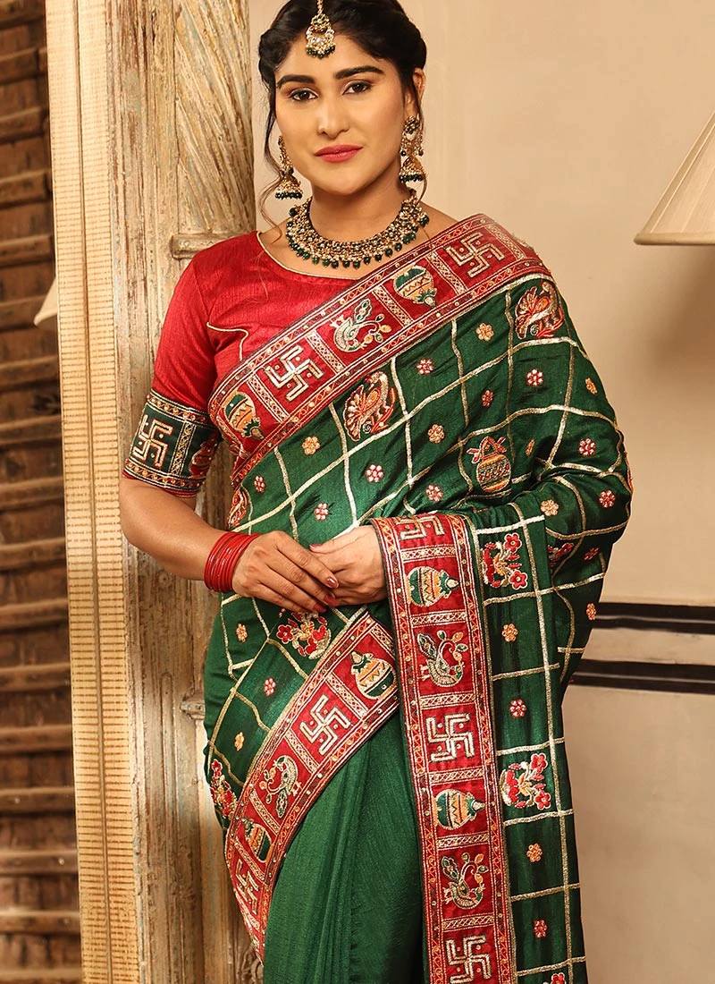 Green Color Embroidery Work Soft Silk Saree Party Wear