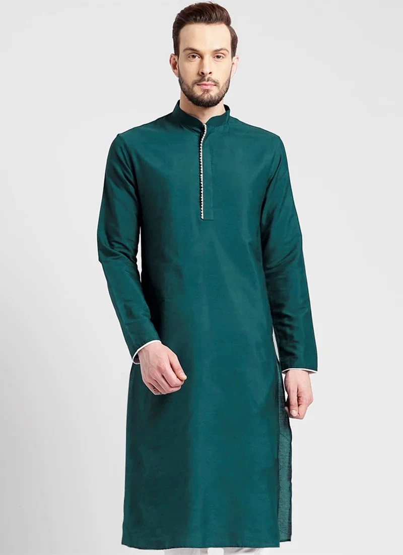 An superb green dupion silk kurta enriched with soild plain stitched fabric representing a royalty in itself.