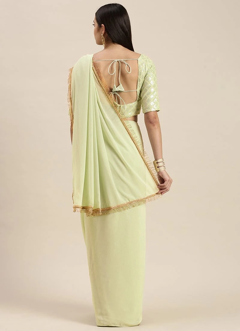 Green Embroidered Blouse N Saree Festive Wear
