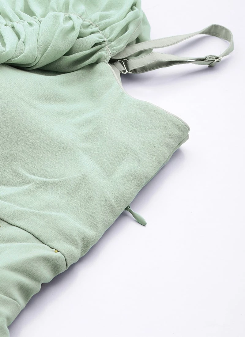 Green Embroidered One Shoulder Style Gown Party Wear