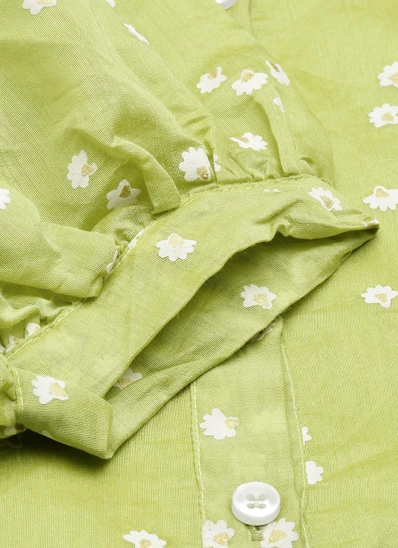 Green Foil Printed Shirt Dress After Six Wear