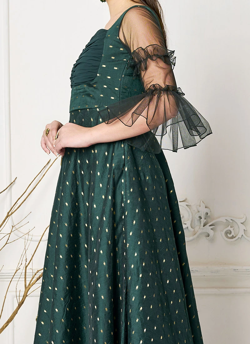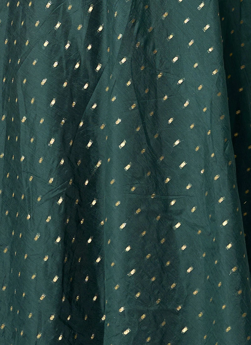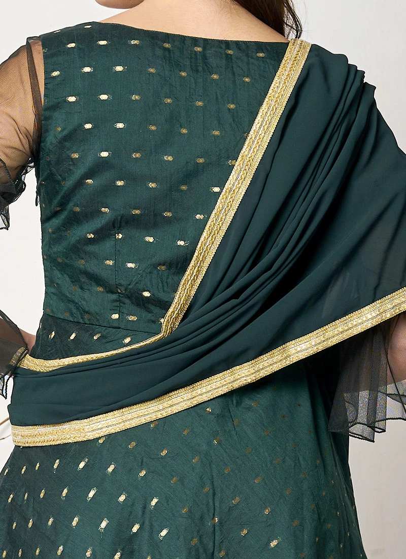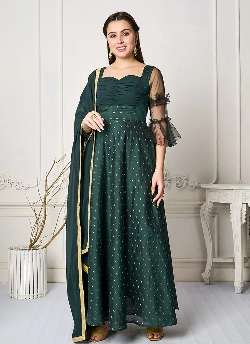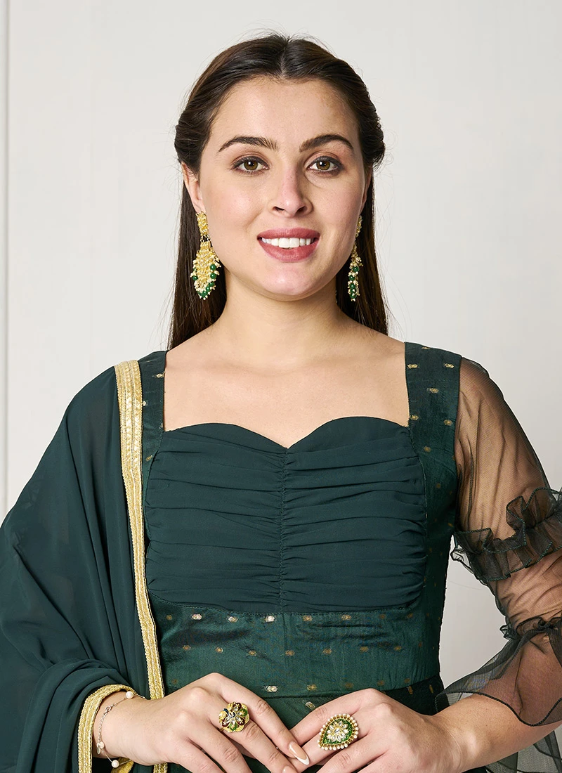 Green Jacquard Ruched Style Anarkali Suit Festive Wear