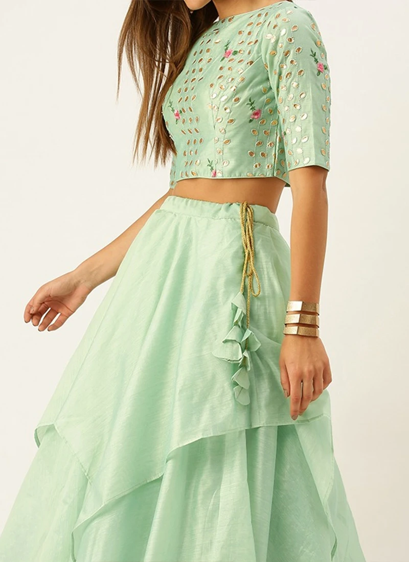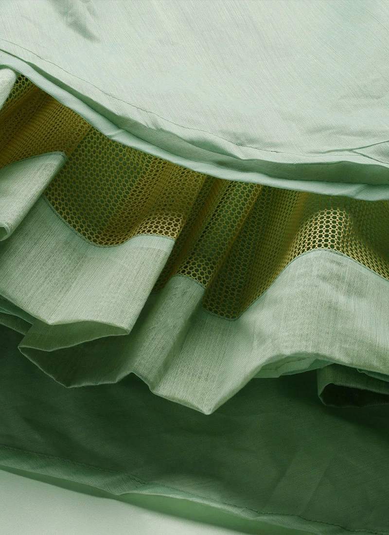 Green Layered Handkerchief Lehenga Choli Set Wedding Wear