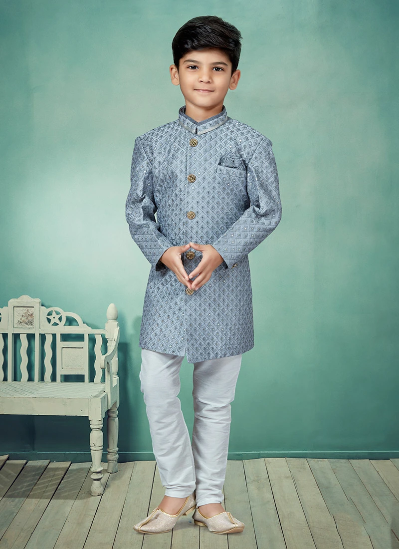 Grey Art Silk Embroidery Indowestern Sherwani Party Wear