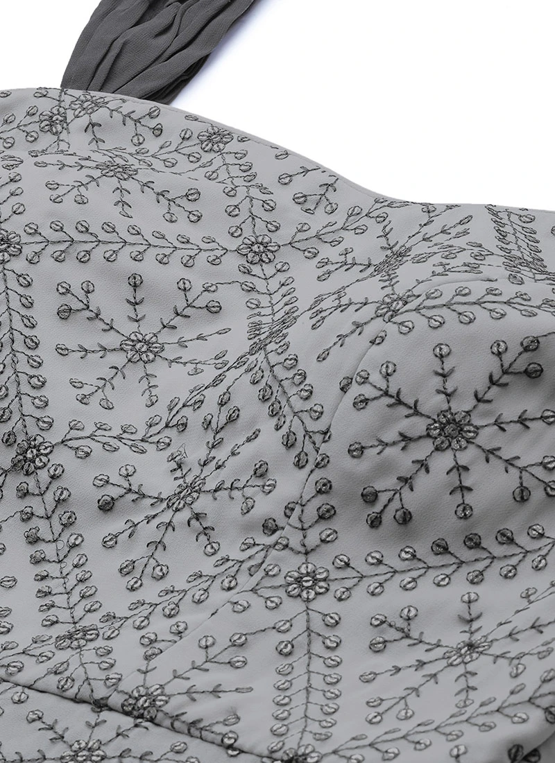 Grey Georgette Embroidered Strap Gown Festive Wear