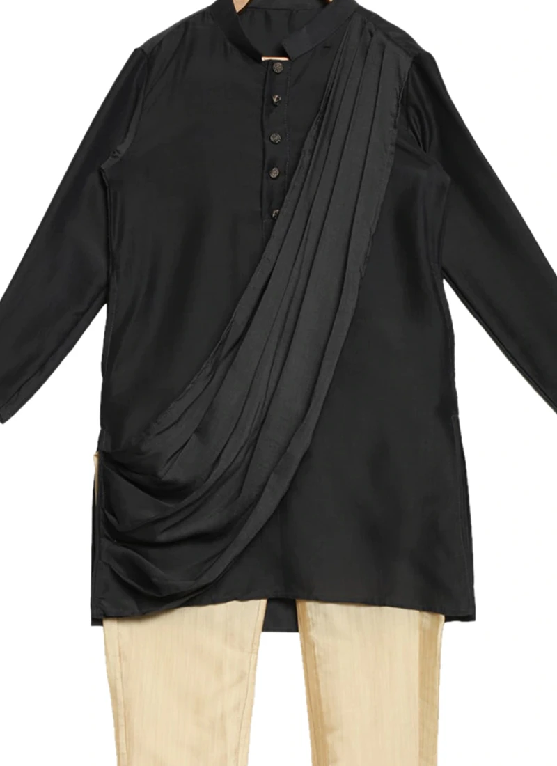 Be the first to review “Kids Boys Blue N Beige Cowl Kurta Aligarhi Pant Set” Cancel reply